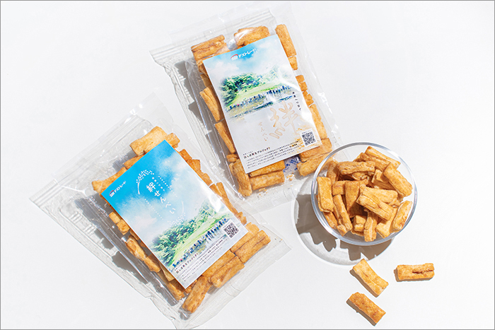 お煎餅名は、本プロジェクトを通じた様々な繋がりや、当該地域と参加者との絆への想いを込めて、『未来へつなぐ、絆せんべい』と名付けました。